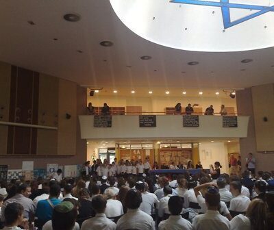 Az ünnepélyes tanévnyitó utolsó fázisaként iskolánk rabbija, Deutsch Róbert Dávid 27. zsoltárával bátorította a résztvevőket, majd a tórai papi áldással minden egybegyűltet megáldott. A gyermekkórus az Oseh Shalom című dallal zárta az ünnepi alkalmat.