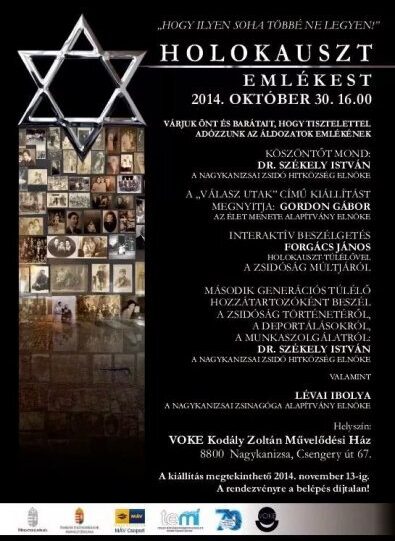 Hogy ilyen soha többé ne legyen – interaktív beszélgetés és kiállítás megnyitó kerül megrendezésre, 2014. október 30-án (csütörtök), 16:00 órakor a nagykanizsai VOKE-Kodály Zoltán Művelődési Házban. Az eseményre várjuk Önt és barátait, hogy tisztelettel adózzunk az áldozatok emléke előtt.