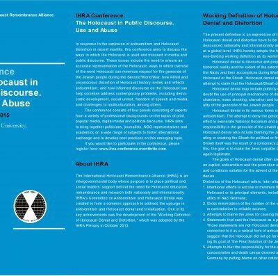 A Nemzetközi Holokauszt Emlékezési Szövetség (IHRA) Antiszemitizmus és Holokauszttagadás Elleni Küzdelemért Felelős Bizottsága tisztelettel meghív minden érdeklődőt: a ,Holokauszt a közbeszédben” című IHRA-konferenciára, 2015. november 6. (pénteken) 9:00 és 15:30 óra között.