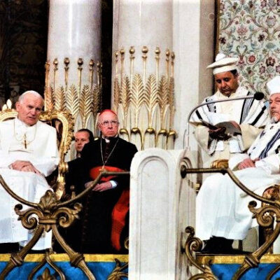 Az akkori katolikus egyházfő, II. János Pál a római zsinagógában 1986. április 13-án tette azt a történelmi jelentőségű látogatását, amely mérföldkőnek bizonyult a keresztény és az izraelita közösség két évezredes kapcsolatában. Az esemény jelentőségét növelte az a másik találkozó, amelyre fél évvel később került sor Assisiben, ahol a világvallások vezetői együtt imádkoztak a békéért.
