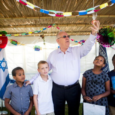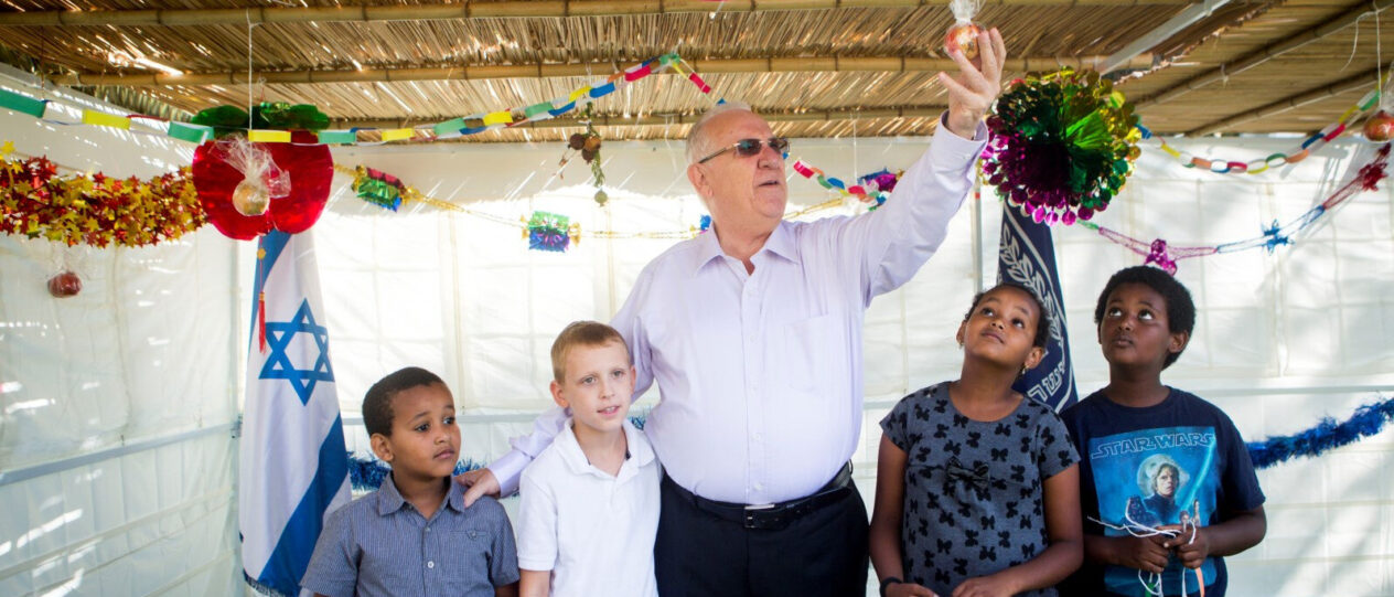 (Címlapkép: Reuven Rivlin, a Zsidó Állam volt elnöke egy Szukkot ünnepen izraeli gyerekekkel. Fotó: Miriam Alster/FLASH90)