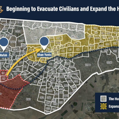 A civilek elköltöztetéséről az IDF tájékoztatta a nemzetközi és a palesztin segélyszervezeteket. A hadsereg szóvivője azt közölte, hogy kiterjesztik a humanitárius övezetet al-Mavaszira, ahol sátorvárost állítottak fel, élelmiszerraktárakat emeltek, és létrehoztak egy tábori kórházat is.