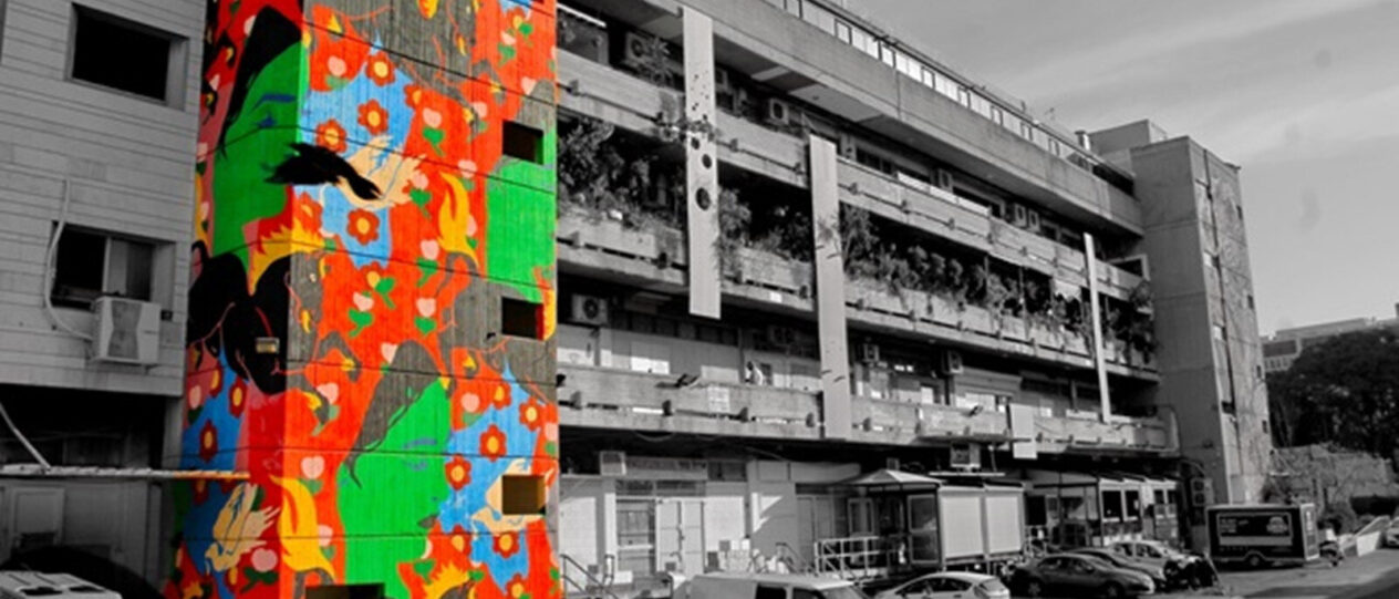 A meghívott külföldi művészekkel kiegészülve az izraeli művész csapatok munkája nyomán most a Talpiyotban harminc épület színei kiabálnak a szürkületre.