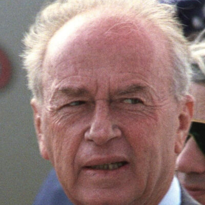 Jichák Rabin az izraeli-palesztin békefolyamatok szimbóluma, Nobel-békedíjas államférfi, aki az ellene elkövetett merényletben vesztette életét 1995. november 4-én.