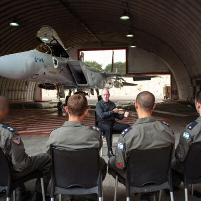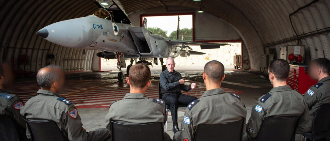 Illusztráció: Az izraeli védelmi miniszter harci gépek pilótáival. Forrás: Joáv Gallant/Facebook