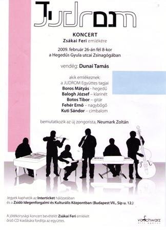 A JUDROM Együttes Zsákai Ferenc Emlékkoncertjének tervezett programja: