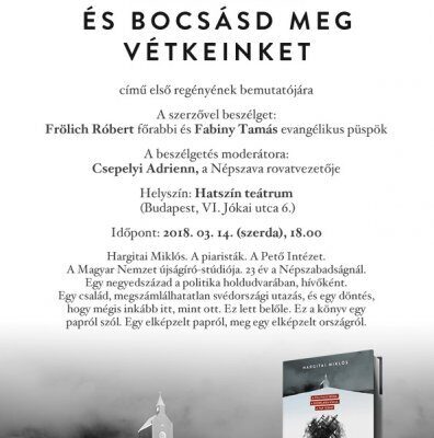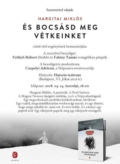 Az ismert újságíró, Hargitai Miklós, a Népszava munkatársa és a MÚOSZ elnöke megírta élete első regényét Bocsásd meg a mi vétkeinket címmel és a bemutatóra Fabinyi Miklós mellett Frölich Róbert országos főrabbit hívta el a kiadó.