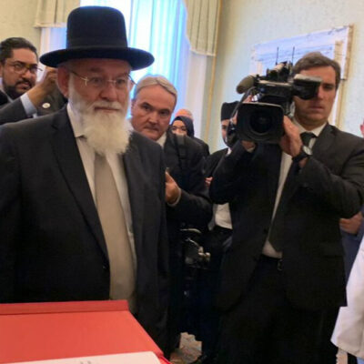 Avraham Steinberg rabbi és más vallási vezetők Ferenc pápának átadják az eutanáziát elítélő dokumentumot