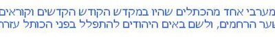A világ zsidóságának mindenkori legszentebb helye, ahol egykoron a két jeruzsálemi Templom állott. Cion maga, ahonnan a Tóra szétáradt, és tanításainak lenyűgöző összességével áldóan hatott a világ eszmevilágára. Hatott népünk, közösségünk, vallásunk, s az egész világ szellemi arculatára.