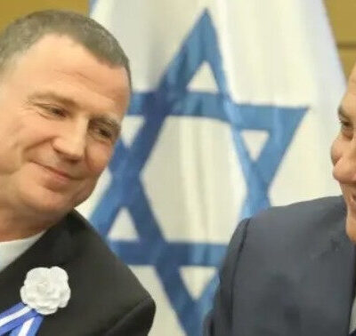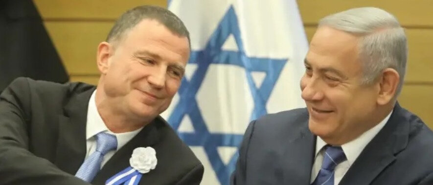 Benjamin Netanyahu és Yuli Edelstein kezet fognak a 21. Kneszetben.(A kép forrása: Jerusalem Post)https://www.jpost.com/