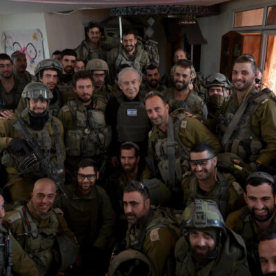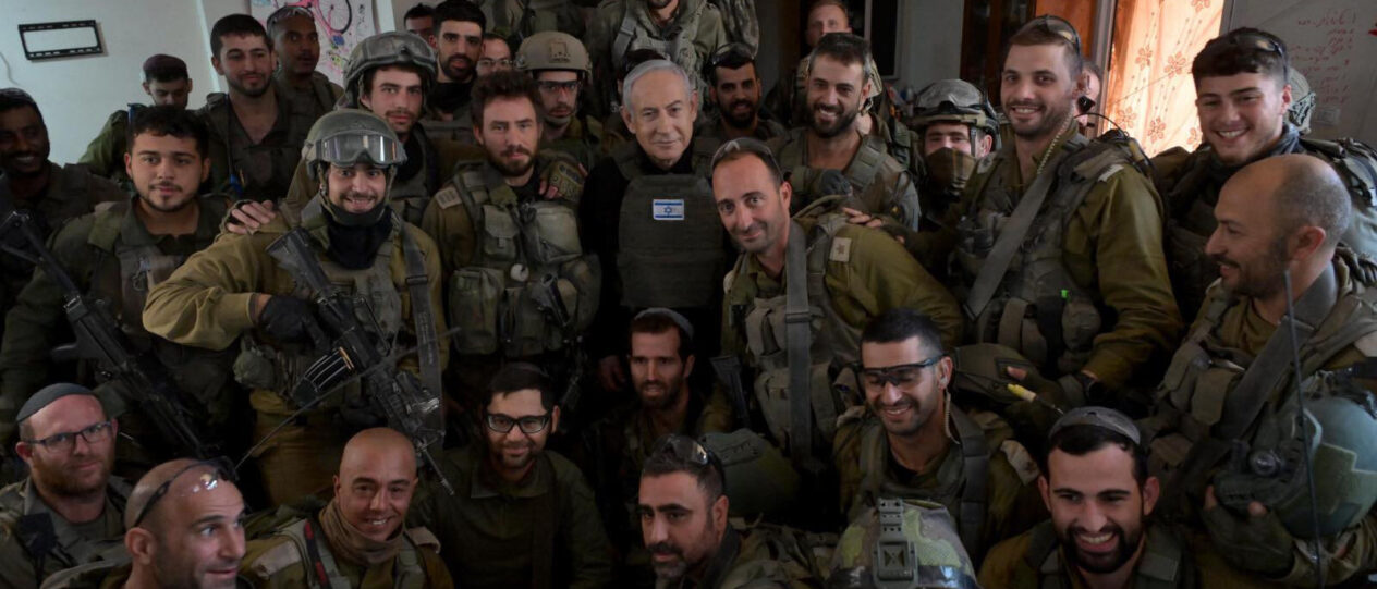 (Címlapkép: A kormányfő a Gázai övezetben harcoló katonák gyűrűjében. Forrás: Netanjahu/Facebook)
