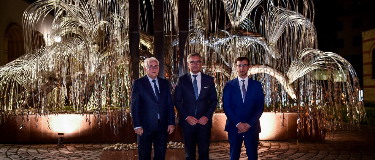 Innen együtt mentek a Dohány utcai zsinagóga udvarán lévő Emanuel emlékfához, ahol dr. Grósz Andor, a Magyarországi Zsidó Hitközségek Szövetsége (Mazsihisz) elnöke fogadta a politikusokat a szukot második főnapjának kimenetele után. Magnus Brunner elhelyezte az emlékezés köveit, majd fehet hajtott a fánál a holokauszt áldozatainak tiszteletére.