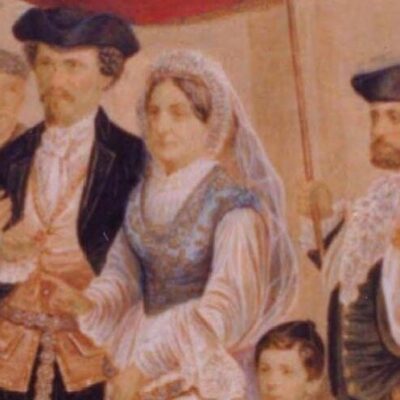 Egy névtelen erfurti lovag leírása szerint a zsidók ünnepélyesen felvonultak Mátyás király és Beatrix 1476-ban lezajlott esküvői menetében: Buda várának bejáratánál a zsidók élén agg elöljárójuk ment, lóháton, kivont karddal, melyen kosár függött, amelyben tíz font ezüst volt. Mellette fia, szintén lóháton, karddal és ezüst kosárral. Utánuk jött huszonnégy lovag, mindnyájan bíbor díszruhában, kalapjukon három szál strucctollal. A leírás szerint Fekete (Schwartz) Mendel, fia Jakab és a lovagok (nyilván a hitközségi elöljárókról van szó) Dávid-pajzzsal díszített zászlóval jelentek meg az esküvői menetben. (Mellesleg, ez az első említés a világon a hatágú csillagról, mint a zsidóság szimbólumáról.) A felvonulás leírása jól érzékelteti a magyarországi zsidók különleges helyzetét, hiszen az iménti magyar példán kívül az egész középkori keresztény Európában sehol nem tudunk arról, hogy zsidók lovon, vagy karddal nyilvánosan megjelenhettek volna.