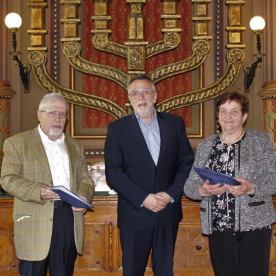 – A honlapunk olvasói még biztosan emlékeznek rá: pár héttel ezelőtt köszöntöttük Harsányi Lászlót abból az alkalomból, hogy a Szövetség honlapján megjelent az említett életképsorozatának 100. darabja. Most pedig abból az alkalomból köszöntjük őt, hogy hiánypótló munkásságáért megkapta a Mazsihisz által alapított a Magyarországi Zsidókért díjat – zárta beszédét dr. Kunos Péter.