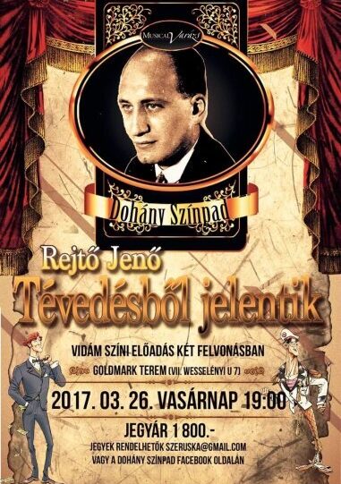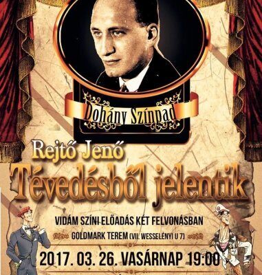 A Dohány színpadon március 26-án kerül bemutatásra a “Tévedésből jelentik” című vígjáték, mely a tévedések és félreértések darabja, amolyan Rejtő- Metamorf vegyes üzemmódban. Egy teljes frontos támadásra számíthatnak a nézők rekeszizmaik ellen.
