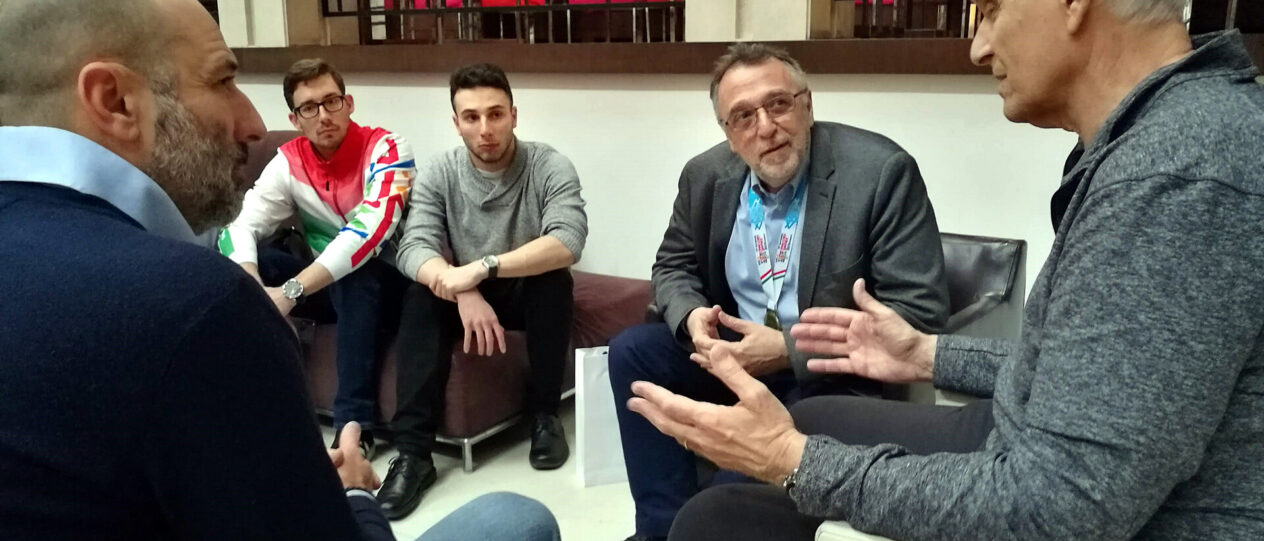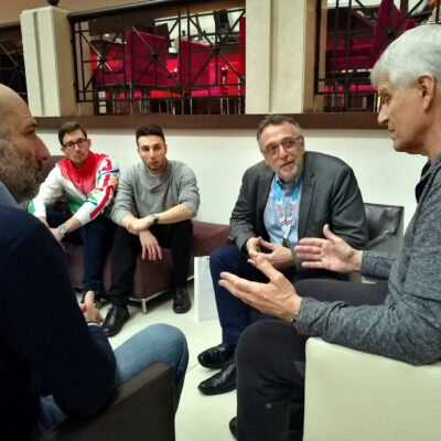 Heisler Andrással és Jusztin Ádámmal. A háttérben Békési Dániel és Pálmai Csaba