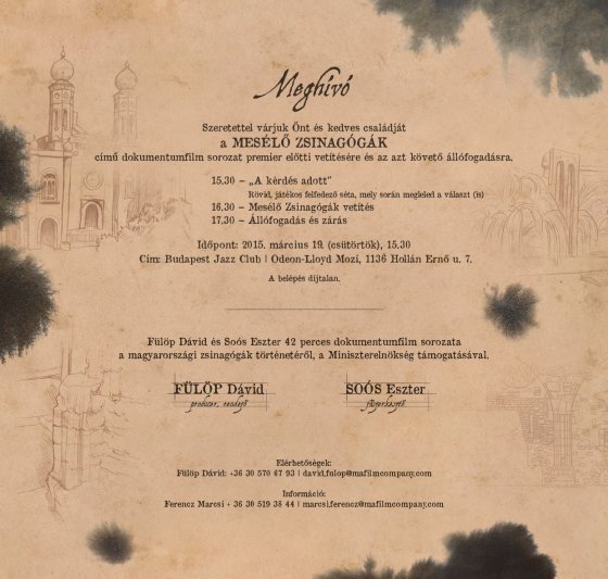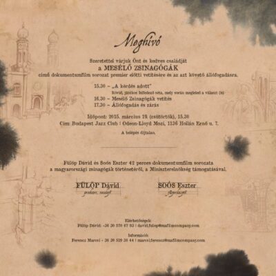 Meghívó a Mesélő zsinagógák című dokumentumfilm sorozat premierjére