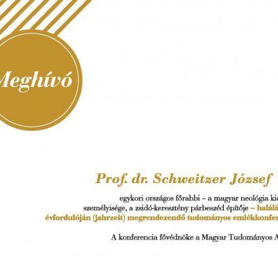 Meghívó Schweitzer József (zcl), egykori országos főrabbi és az Országos Rabbiképző Intézet volt igazgatója halálának első évfordulójára rendezett tudományos emlékkonferenciára, 2016. január 27. (szerda), 10:00-16:00 óra között. Az esemény helyszíne a Magyar Tudományos Akadémia I. emeleti felolvasóterme. A konferencia fővédnöke a Magyar Tudományos Akadémia.