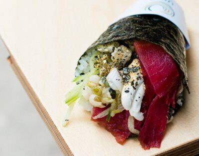Chris Jaeckle főszakács kultúraközi ételkompozíciója céklában pácolt füstölt lazacra épül, amelyet egy szusi göngyölegbe fognak majd betekerni némi krémsajt, uborka, ecetes mogyoróhagyma és más exkluzív bizarrságok társaságában, a Forward összefoglalója szerint tulajdonképpen egy rendhagyó bagel lesz erőteljes japán akcentussal. Hét nyelven fog beszélni, a jiddis és a héber bizonyosan köztük lesznek, de mind a héten erőteljes japán akcentussal.
