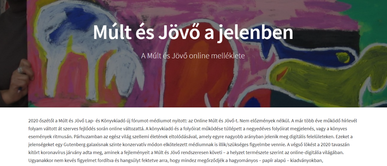 Mint a kiadó vezetője és szerkesztője írja, 2020 őszétől a Múlt és Jövő Lap- és Könyvkiadó új fórumot-médiumot nyitott: az Online Múlt és Jövő-t. Nem előzmények nélkül. A már több éve működő hírlevél folyam váltott át szerves fejlődés során online változattá. A könyvkiadó és a folyóirat működése túllépett a negyedéves folyóirat megjelenés, vagy a könyves események ritmusán. Párhuzamban az egész világ szellemi életének eltolódásával, amely egyre nagyobb arányban jelenik meg digitális felelületeken. Ezeket a jelenségeket egy Gutenberg galaxisnak szinte konzervatív módon elkötelezett médiumnak is illik/szükséges figyelmbe vennie.