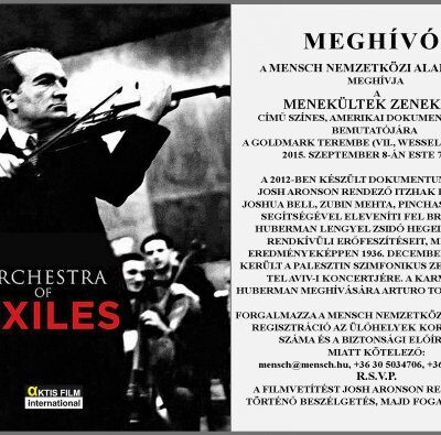 A Mensch Nemzetközi Alapítvány meghívja: A menekültek zenekara (Orchestra of Exiles) című színes, amerikai dokumentumfilm bemutatójára, 2015. szeptember 8. (kedd), 19:00 órára a Goldmark terembe (Budapest VII. ker., Wesselényi utca 7.)