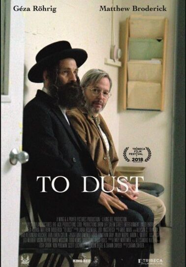 A Röhrig Géza és Matthew Broderick főszereplésével készült To Dust című amerikai film ősbemutatóját szombat este tartották a Limmud Magyarország által az Európa Tanács Budapesti Ifjúsági Centrumában szervezett Limmud Fesztiválon. Előre sejthettem, hogy jó filmre ülünk be, elvégre az idei Tribeca Filmfesztiválon a mű rendezője, Shawn Snyder elnyerte vele a legjobb első filmes rendező díját. De azt nem hittem volna, hogy végül ilyen jó ízűt fogunk nevetni egy Shmuel nevű, a feleségét mélyen gyászóló haszid kántor (Röhrig Géza), és Albert, a segítőkész, de kissé lassú felfogású főiskolai biológia professzor (Matthew Broderick) amúgy nagyon szomorú kalandjain.