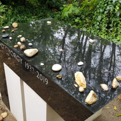 Írni, enni, inni nem tudunk sajnos ezen a sírkőasztalon, maradnak az emlékkavicsok.