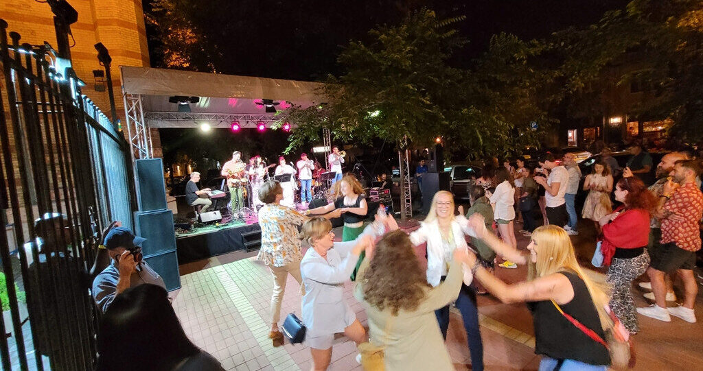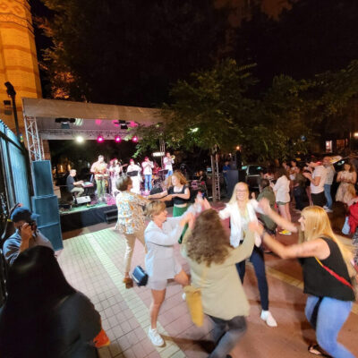 Este 11 órától a „judeo folk-rock” zenét játszó Hamsa zenekaré volt a Dohány zsinagóga előtt felállított színpad, és a banda olyan lendülettel vetette bele magát a zenélésbe, hogy a lelkesedésük hamarosan a közönségre is átragadt: olyannyira, hogy a színpad előtt hamarosan fergeteges tánc kezdődött. Megérdemlik, hogy megemlítsük a zenészek nevét, már csak azért is, mert ha a közeljövőben egy programszervezőnek azon járna az esze, hogy ősi zsidó és közel-keleti dallamokat modern hangszerelésben megszólaltató együttest akar meghívni, akkor tudja, hogy kiket kell keresnie. A Hamsa tagjai tehát Kuna Valéria és Kata (ének), Kuna Bence (ének, kürt, ütőhangszerek), Kuna Gyula (trombita), Kuna Márton (harsona), Somos András (billentyűs hangszerek), Éder Ferenc „Lá” (basszusgitár) és végül a doboknál: Fábry Adonisz. Szóval név szerint ők voltak azok, akik még jóval éjfél után is olyan bulit csaptak a sokat látott zsinagóga előtt, hogy legszívesebben máris meghívnánk őket a 2023-as múzeumi éjszakára is.