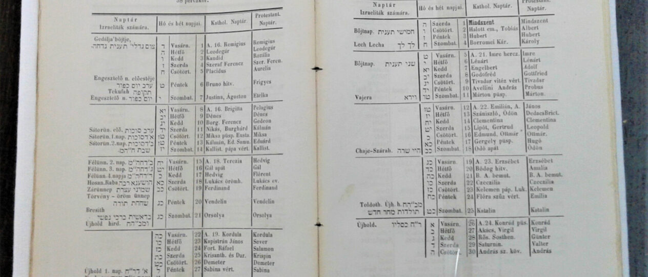 (Címlapkép: az első magyar zsidó naptár egy példánya a Magyar Zsidó Múzeum és Levéltár gyűjteményéből)