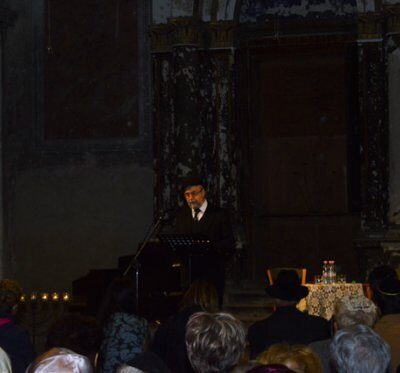 A rabbi felidézte azt az utolsó szombatot, amikor a pápai zsidók összegyűlhettek zsinagógájuk falai között, majd a megdöbbentő, menetet a marhavagonokig, a fájdalmas utazást, az auschwitzi rámpán történt kegyetlen szelektálást, és a végső utat, a gázkamrák borzalmait. Mint mondta, mi, emberek, szavakkal tudjuk kifejezi magunkat, de Auschwitzra, Dachaura, Treblinkára, Mauthausenre nincsenek szavak.