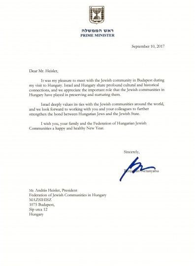 Levélben kívánt boldog zsinagógai új évet a magyar zsidóságnak a Magyarországi Zsidó Hitközségek Szövetségének és a szövetség elnökének Heisler Andrásnak Benjamin Netanjahu Izrael Állam miniszterelnöke. Az alábbiakban a teljes levelet megosztjuk Önökkel.