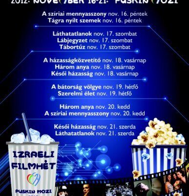 Két zsidó filmfesztivál is lesz novemberben, ráadásul egymás után. Az Izraeli Filmhéten, amit november 16. és 21. között rendeznek meg a Puskin moziban, tíz olyan játékfilmet mutatnak be, amiket különböző rangos filmfesztiválokon már díjaztak.