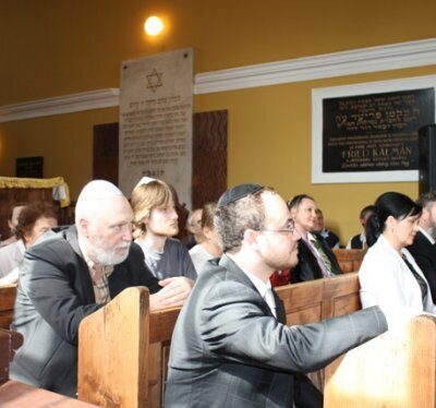 Az épületben Paszternák András (külön köszönet jár neki a teljes nyitvatartási idő végigbeszéléséért) és Paszternák Tamás kalauzolták az érkezőket, szlovákul és magyarul. Örömünkre szolgált, hogy egyre több volt a visszatérő látogató. A zsinagógában Megyes Pál rabbijelölt és Popovics Dávid voltak a házigazdák. Számos érdeklődő kérdés, kérés tette még színesebbé az eseményt.