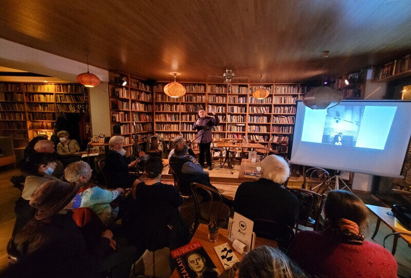 Hozzátette: az emlékest helyszínéül azért választotta a Kelet Kávézó és Galériát, mert a Szegedet és Nagyváradot is megjárt Somlyó Zoltán a budapesti éveiben itt, a szomszédos Kruspér utcában élt és a mai Bartók Béla út kávéházaiban dolgozott, majd később ezen a környéken élte le utolsó éveit a fia, Somlyó György is.