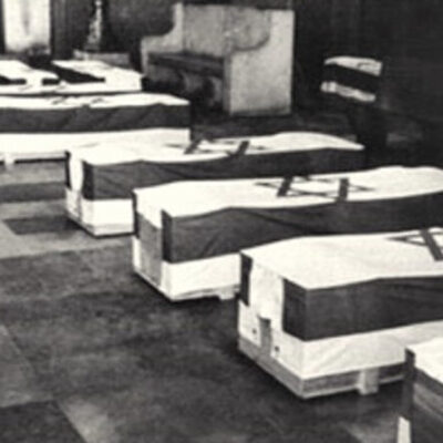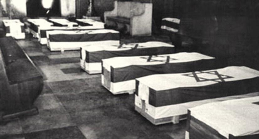(Címlapkép: az áldozatok koporsói München egyik zsinagógájában)