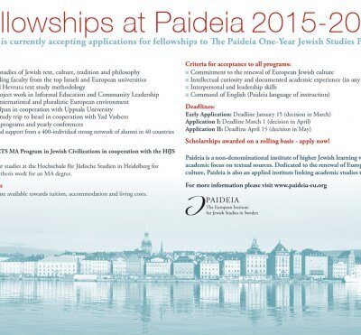 Paideia: Jelentkezés Zsidó Tanulmányok Programra 2015 / 2016