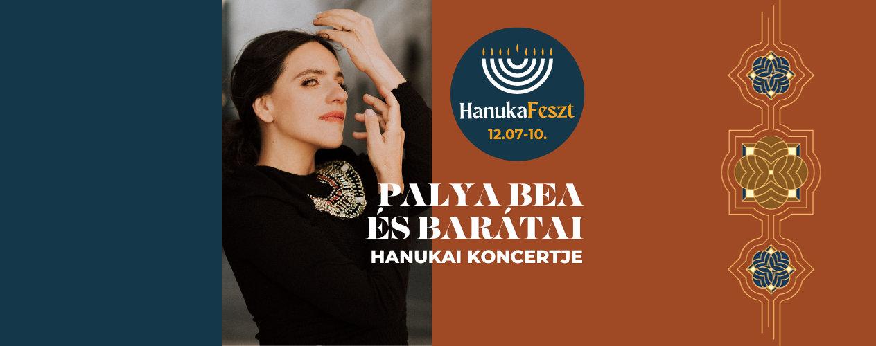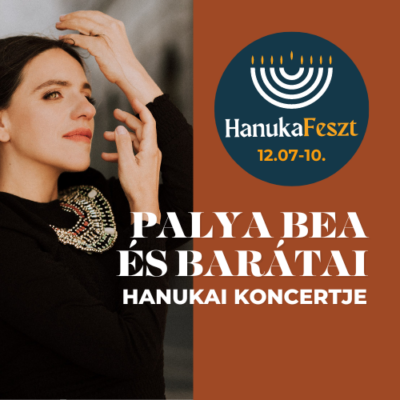 Palya Bea és barátai hanukai ünnepi koncertje a Rumbach Sebestyén utcai zsinagógában 2023. december 10-én, vasárnap este 7 órakor. A koncert előtt meggyújtjuk a hanukia negyedik lángját. Az előadást követően ünnepi fánkkal kedveskedünk nézőinknek. Közreműködnek: Jávori Ferenc „Fegya”, Szokolay „Dongó” Balázs, Gazda Bence és Turi Tímea. Jegyárak: 6900-8900 forint.
