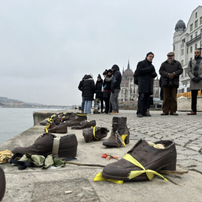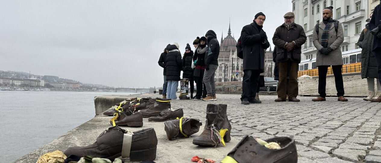 Paul Fox brit nagykövet és munkatársai budapesti holokauszt-emléksétán