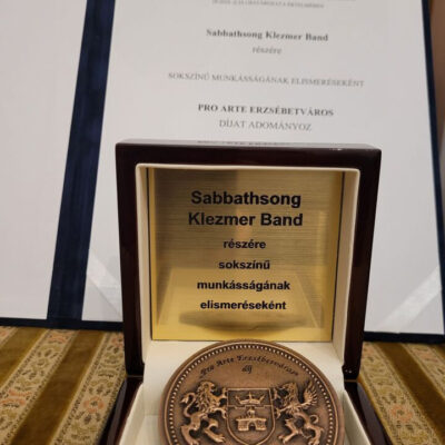 A kerület művészeti értékeinek gyarapításában, hazai és külhoni megismertetésében elévülhetetlen érdemeket szerző Sabbatshong Klezmer Band a március 15-i nemzeti ünnep alkalmából Pro Arte Erzsébetváros-díjat vehetett át. Szívből gratulálunk a zsidó kulturális értékeket magas színvonalon tolmácsoló, több mint negyedszázados zenekarnak!