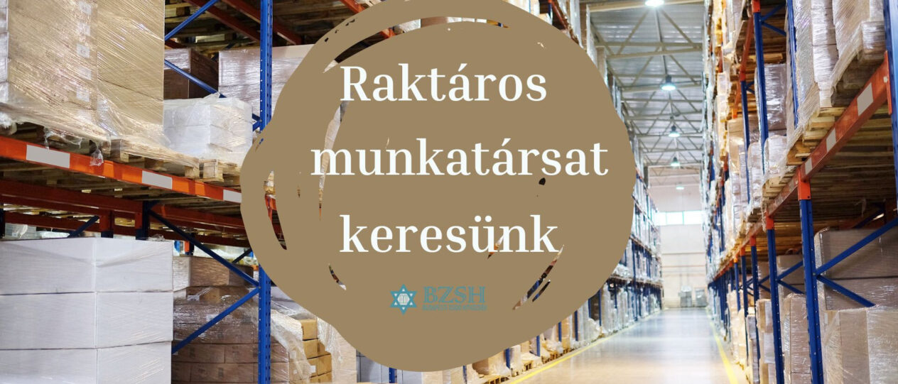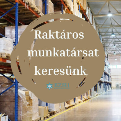 kóser konyhájára raktáros munkatársat keresünk. Jelentkezési határidó: 2022. május 13. péntek, déli 12.00 óra.