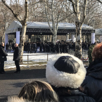 Az Index tudósítójának beszámolója szerint a résztvevők sokat nevettek Schwarzenegger beszéde alatt, majd utána mindenki egy szál fehér virágot tett a producer urnája elé.