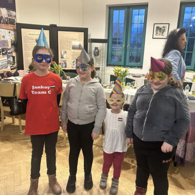 A közösség tagjai természetesen a gyerekekre is gondoltak: nemcsak arra tanították meg őket, hogy hangosan fújoljanak a gonosz Hámán neve hallatán (azaz felnőttkorukban is hallassák a hangjukat az igazságtalanságok miatt), ha hanem vidám purimi kvízt is összeállítottak nekik, aminek eredményeként finom csokikat lehetett nyerni.