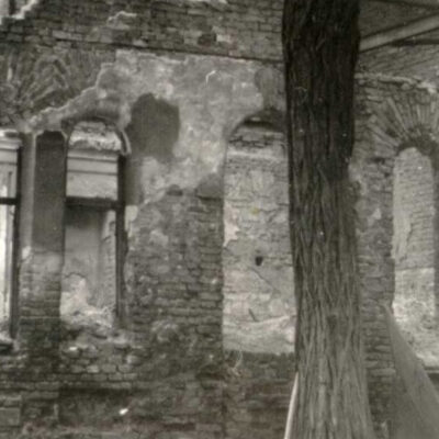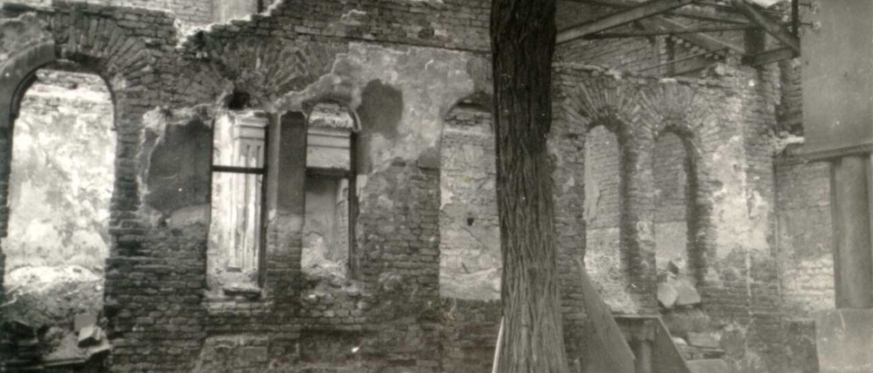 Budapest, a Rumbach utcai zsinagóga udvarán lévő téli imaház romjai, lebontották 1955-ben
