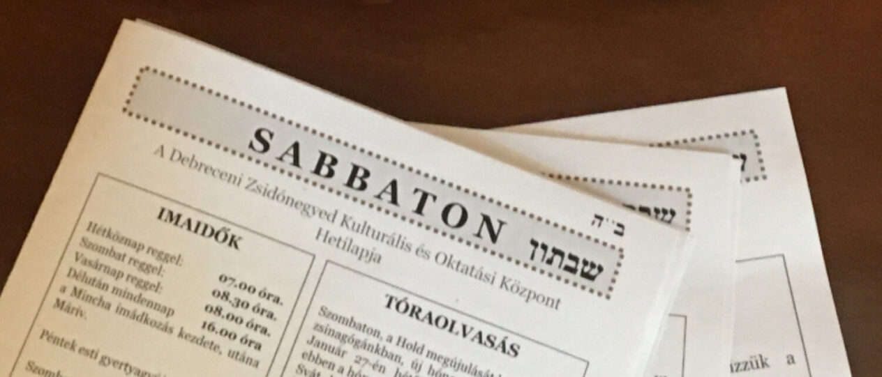 Sabbaton címmel új zsidó hetilap jelenik meg Debrecenben
