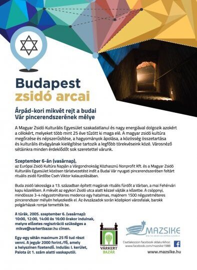 Szeptember 6-án (vasárnap), az Európai Zsidó Kultúra Napján a Zsidó Kulturális Fesztivál zárónapján a Várgondnokság Közhasznú Nonprofit Kft. és a Magyar Zsidó Kulturális Egyesület közösen tárlatvezetést indít a Budai Vár nyugati pincerendszerében feltárt rituális zsidó fürdőbe Cseh Viktor kalauzolásában.