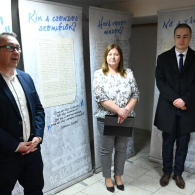 – Izraelt képviselem, ahol biztonságban élnek a zsidók az állam megalakulása, 1948 óta. Izrael azonban nemcsak az ott élőket védi, hanem összefogja az egész világ zsidóságát, illetve a zsidóság jelenét és múltját. Hadd köszönjem meg Vitális Zsombor egyetemi hallgatónak, hogy az Élet Menete Alapítvánnyal együtt megszervezte ezt a tárlatot.