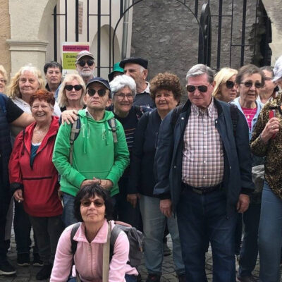 A nap Kerschbaum Katalin vezetésével kezdődött: kisvonatra szálltak, és egy hangulatos városnézés során ismerkedtek meg Sopron nevezetességeivel. A vonatozás közben hangszóróból hallható ismertető – csakúgy, mint egy városnéző buszon – számos érdekességet osztott meg a város történetéről és épített örökségéről.