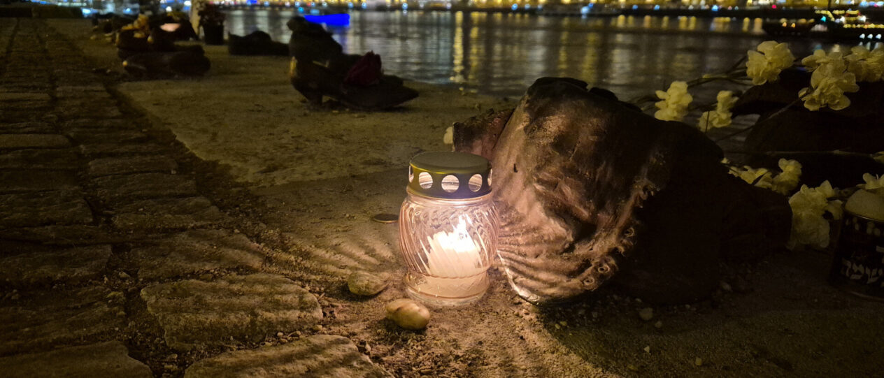 Horgas Péter látványtervező, polgári aktivista kezdeményezésére tartott megemlékezést a Civil Bázis egyesület tegnap este a Duna parton elhelyezett Cipők emlékművénél.