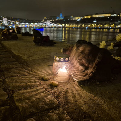 Szívszorító esemény helyszíne volt tegnap este a Cipők emlékműve a Duna partján: azoknak az áldozatoknak az emlékére gyújtottak gyertyát és helyezték el az emlékezés köveit, akiket embertelen, állatias terroristák mészároltak le hanuka első napján Sydney-ben.