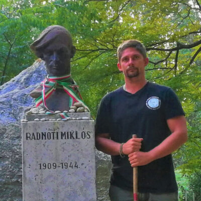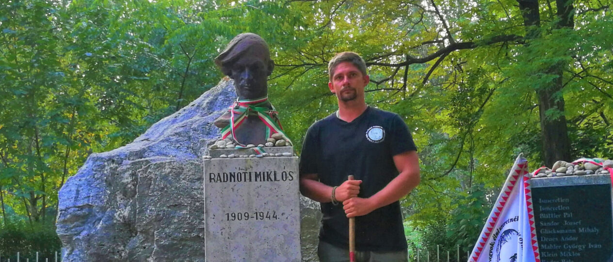 – Ezzel kapcsolatban sokan megkérdezik, hogy vannak-e zsidó gyökereim, de tudtommal nincsenek. Ami Radnótiék történetében engem megérintett, az maga a tragédia. A végtelen véletlenek tragédiája. Hiszen a költő eredetileg a második csoportba kerül, ő könyörgi át magát az elsőbe, s ahogy ők elindulnak, rá pár napra a második lépcsőt felszabadítják a partizánok. Mohácson egy nappal kerülik el a Vörös Hadsereg bevonulását. Az élet végig ott volt a nyomukban, de a halál az utolsó pillanatban megfogta a menet kezét és elhúzta őket a megmeneküléstől. Már általános iskolában megfogott a Bortól Abdáig tartó út eseménye, volt ugyanis egy remek magyartanárunk, aki órára egyszer behozta a Bori notesz hasonmás kiadását. Mai napig emlékszem a döbbenetre, amit átéltem a Bori notesz története kapcsán. Olyannyira megérintett Radnóti élni akarása, meg nem alkuvása és a belőle áradó megbocsátás, hogy a saját szememmel akartam látni Bort, s látni akartam, hogy ma mi van ott ahol a munkaszolgálatosok átvonultak. Negyven éves vagyok, szóval huszonöt-huszonhat éve vágytam rá, hogy Radnóti utolsó útját végigjárjam. A „végső lökést” az adta, hogy tavaly volt a születésének száztizedik, halálának pedig a hetvenötödik évfordulója.